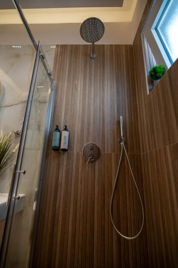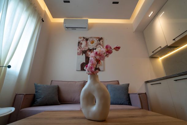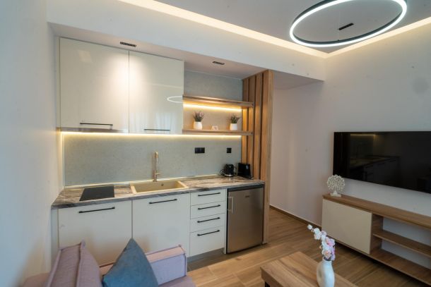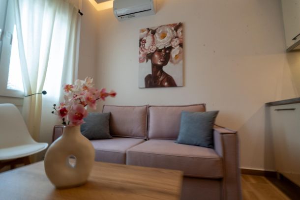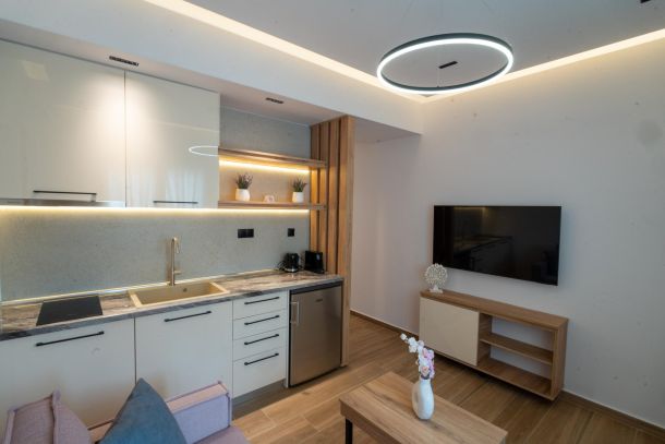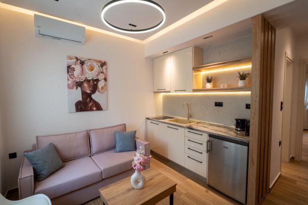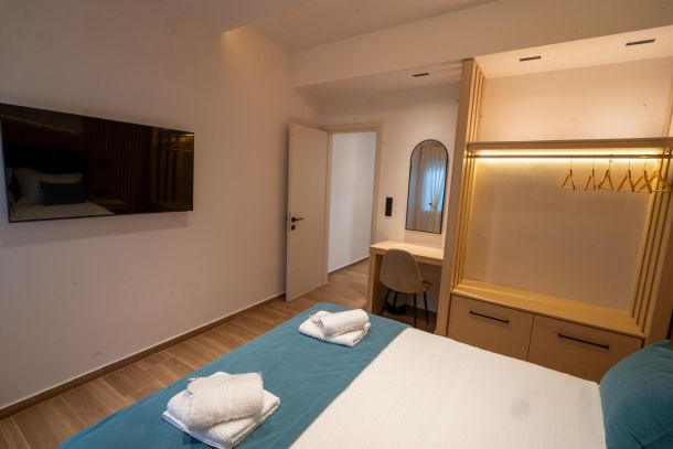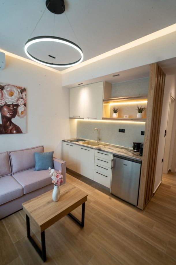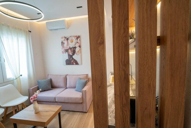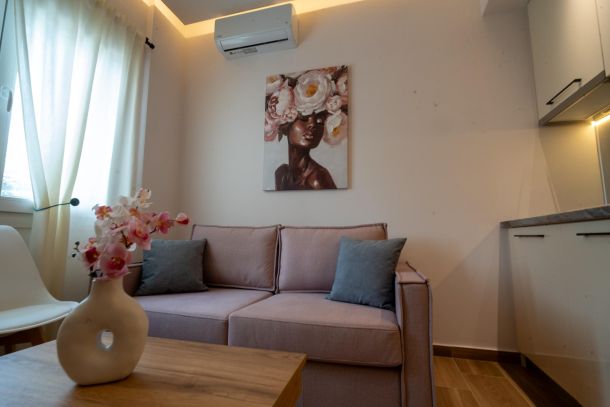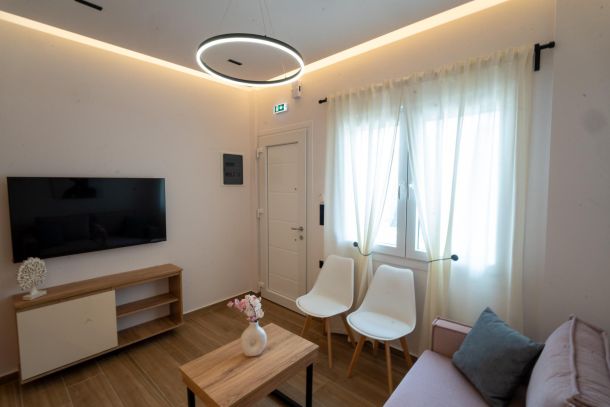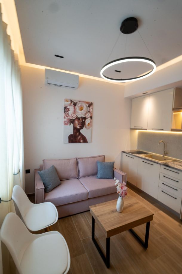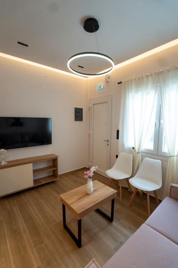 Το μοντέρνο design συνδυάζεται αρμονικά με όλες τις ανέσεις ενός πλήρως εξοπλισμένου διαμερίσματος: Smart TV με Netflix, ηχομόνωση, κλιματισμό σε κάθε χώρο, και πλήρη κουζίνα με επαγωγικές εστίες, τοστιέρα, Nespresso μηχανή και μαγειρικά σκεύη.