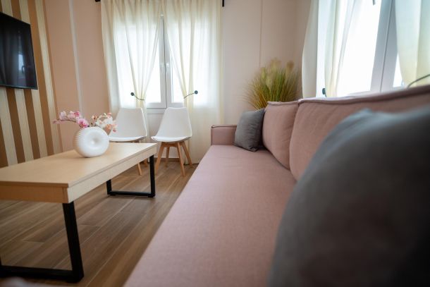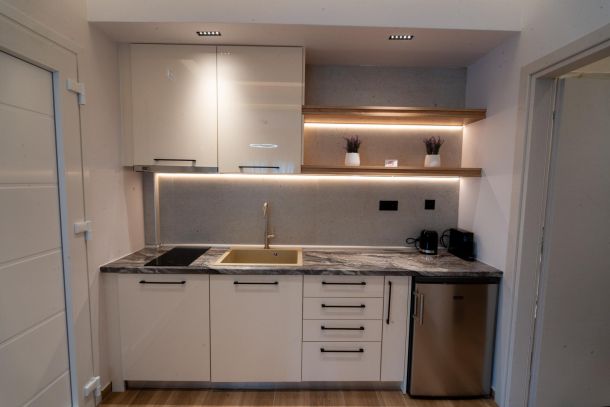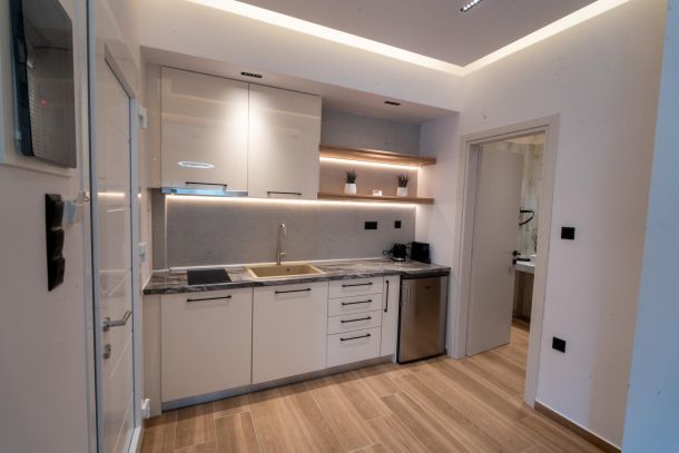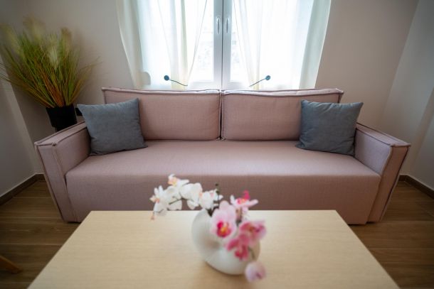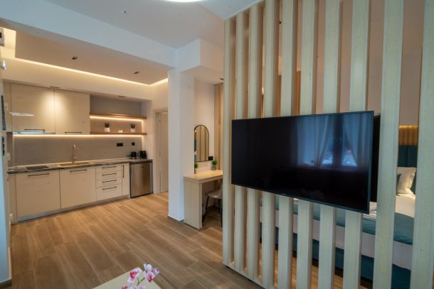 Το μοντέρνο design συνδυάζεται αρμονικά με όλες τις ανέσεις ενός πλήρως εξοπλισμένου διαμερίσματος: Smart TV με Netflix, ηχομόνωση, κλιματισμό σε κάθε χώρο, και πλήρη κουζίνα με επαγωγικές εστίες, τοστιέρα, Nespresso μηχανή και μαγειρικά σκεύη.