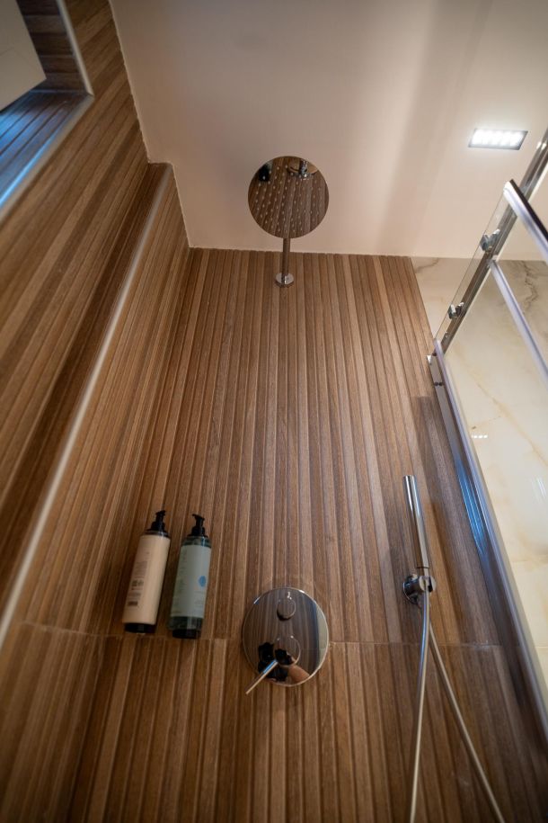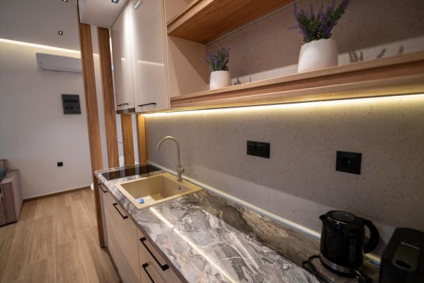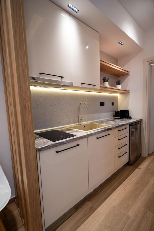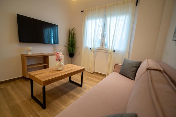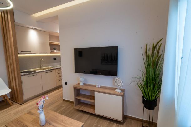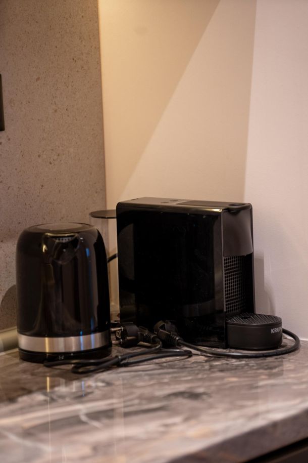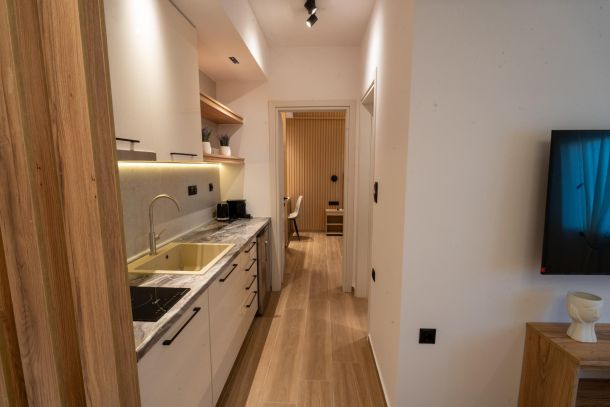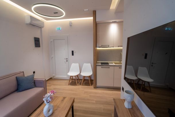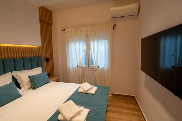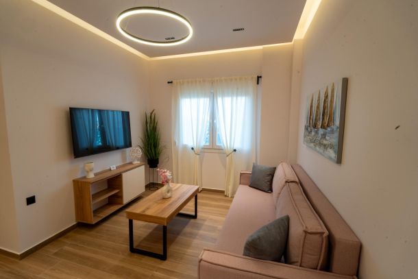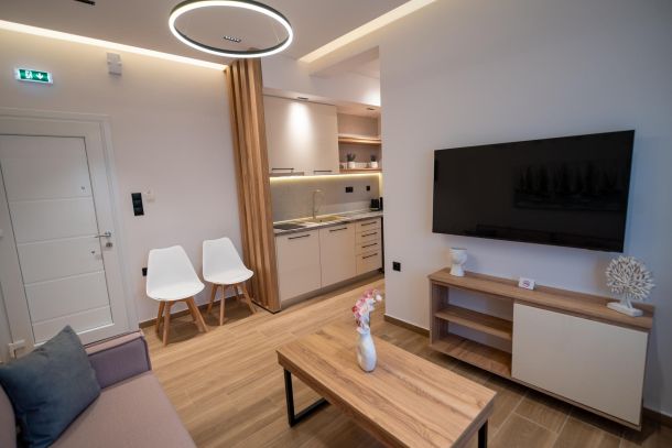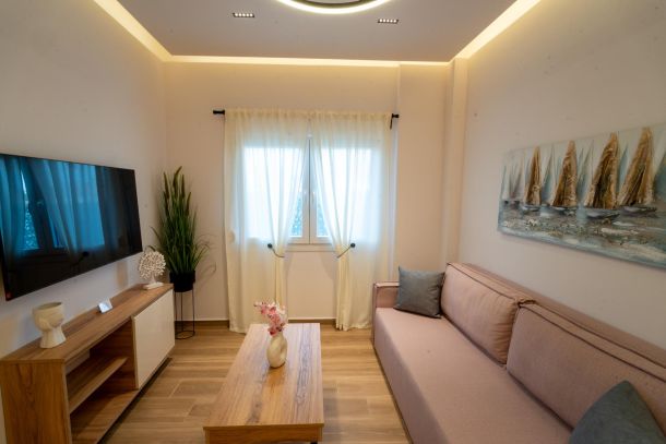 Το μοντέρνο design συνδυάζεται αρμονικά με όλες τις ανέσεις ενός πλήρως εξοπλισμένου διαμερίσματος: Smart TV με Netflix, ηχομόνωση, κλιματισμό σε κάθε χώρο, και πλήρη κουζίνα με επαγωγικές εστίες, τοστιέρα, Nespresso μηχανή και μαγειρικά σκεύη.